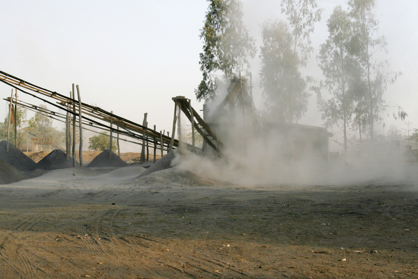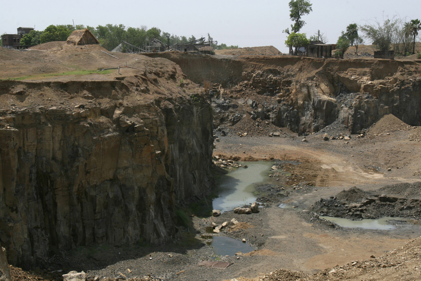 The outskirts of the area were rich with granite and other stone resources. Meanwhile, a few small entrepreneurs set out to exploit this layer of stones by forming small businesses supplying the stone chips needed to make concrete structures in big cities for large-scale construction purposes. They started to dig the earth and used dynamite to blast the layers. Tumbani experienced new-fangled aural and visual images, joined by newer sounds from digging machines, overloaded trucks, and crushers. New sights included working Santhal women in colourful attire on the streets, bulky machinery, and smoke rising over the landscape. The air became thick with stone powders. One after another, crusher machines were installed, and more lands were being occupied by enthusiastic investors. People from the Santhal community were attracted to the doors of crusher offices as daily labourers. Many Santhal women came to earn extra money, which disrupted the domestic balance. Within a few years, most of the working people were diagnosed with the preliminary stages of tuberculosis of the lungs due to the stone dust in the air. Tumbani saw changes in the landscape, but was still perplexed in coming to terms with the new situation. The school observed these changes silently, but disturbances in the social, cultural, and ecological balance were unanswered. The extraneous effects of the industrialisation of the landscape was visible as school staff members moved off the campus to stay around the nearby township of Rampurhat. Students started to leave the hostel; most of the rooms lay unoccupied and under-maintained. Schooling was reduced to become a mere ten-to-five affair. In the evenings, the locality was silent, the vacant buildings and open fields listened to the not-so-distant sound of crusher machines and witnessed black smoke billowing into the sky.