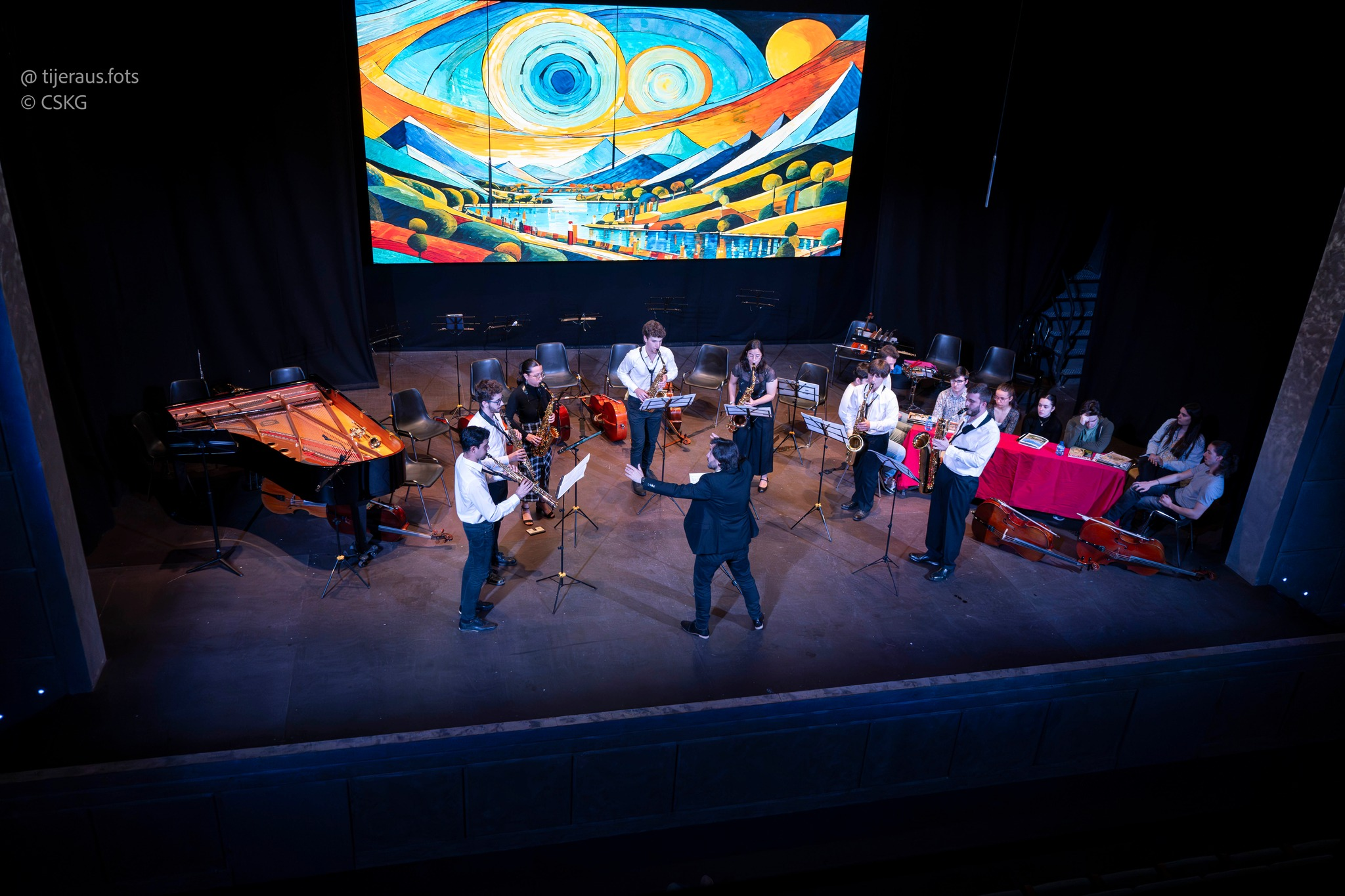 Their programs span from solo pieces to larger formats with up to ten musicians, always open to expanding the ensemble with other instruments and artists. The group was founded and continues to develop within the framework of the Centro Superior Katarina Gurska in Madrid, under the direction of their professor, saxophonist Pedro Pablo Cámara.