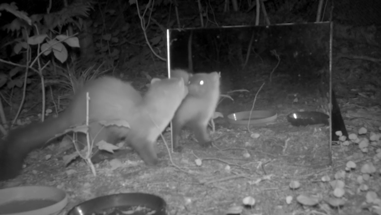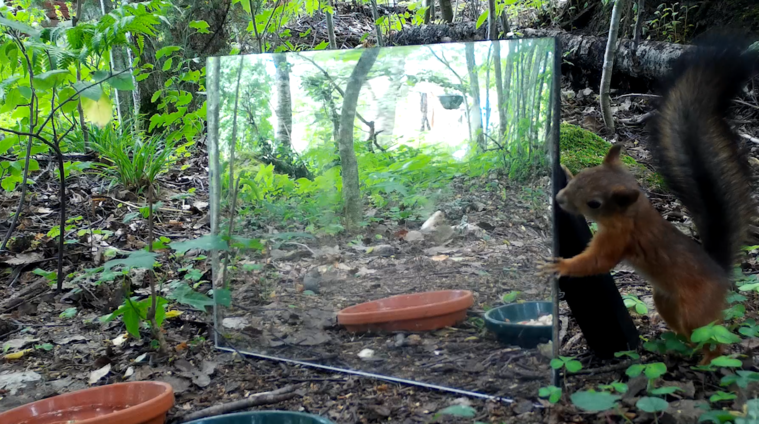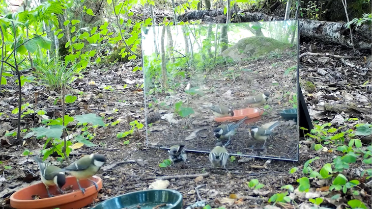 Taiteilijakollegani Zurichistä vinkkasi minua ottamaan yhteyttä suomalaiseen Zurichin yliopiston evoluutiobiologian ja ympäristötutkimuksen laitoksen evoluutiobiologi Sofia Forssiin. Forss tutkii villieläinten neofobiaa ja uteliaisuutta. Viestiteltyäni Forssin kanssa, päädyin tutkimaan eläimiä ensin kuvaamalla niitä peilin edessä, sillä peilikoe on yksi käytetyimmistä eläinten itsetuntemuksen tutkimusvälineistä. Voisimmeko oppia tästä vanhasta koeasetelmasta jotain uutta katsoen sitä taiteen kautta?