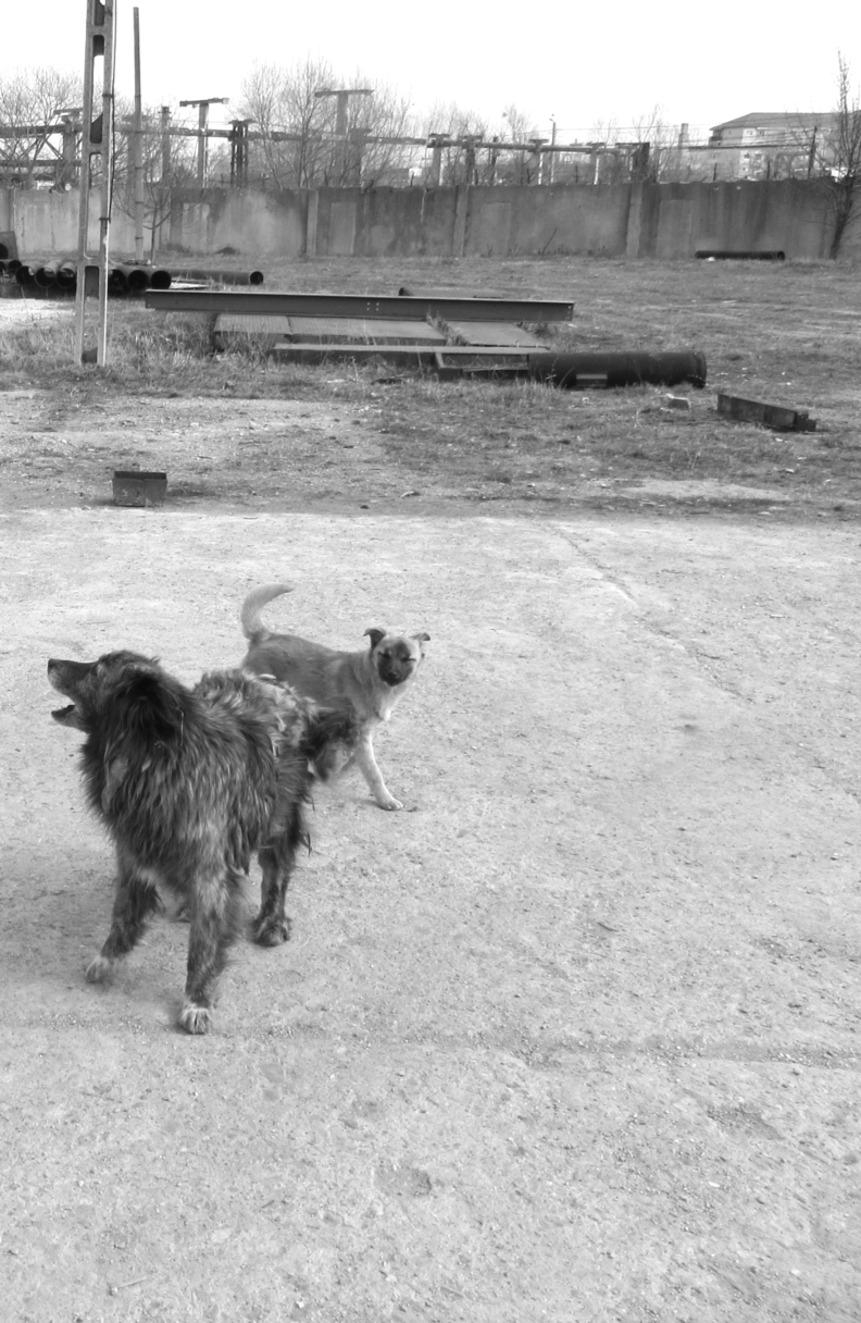 My father, a now-retired civil engineer who had worked on the Sc Constructii Sa sites since the early 1990s, was well acquainted with canine security details and thus conveniently carried sacks of dried dog food in the trunk of his car. He was my chaperone during the first visit. The dogs were moderately well-kept, all vaccinated and neutered, or so I was assured, and inhabited a series of sheds that flanked the north side of the site.