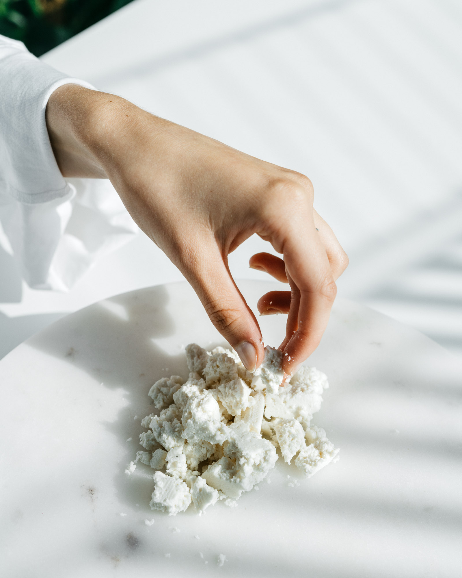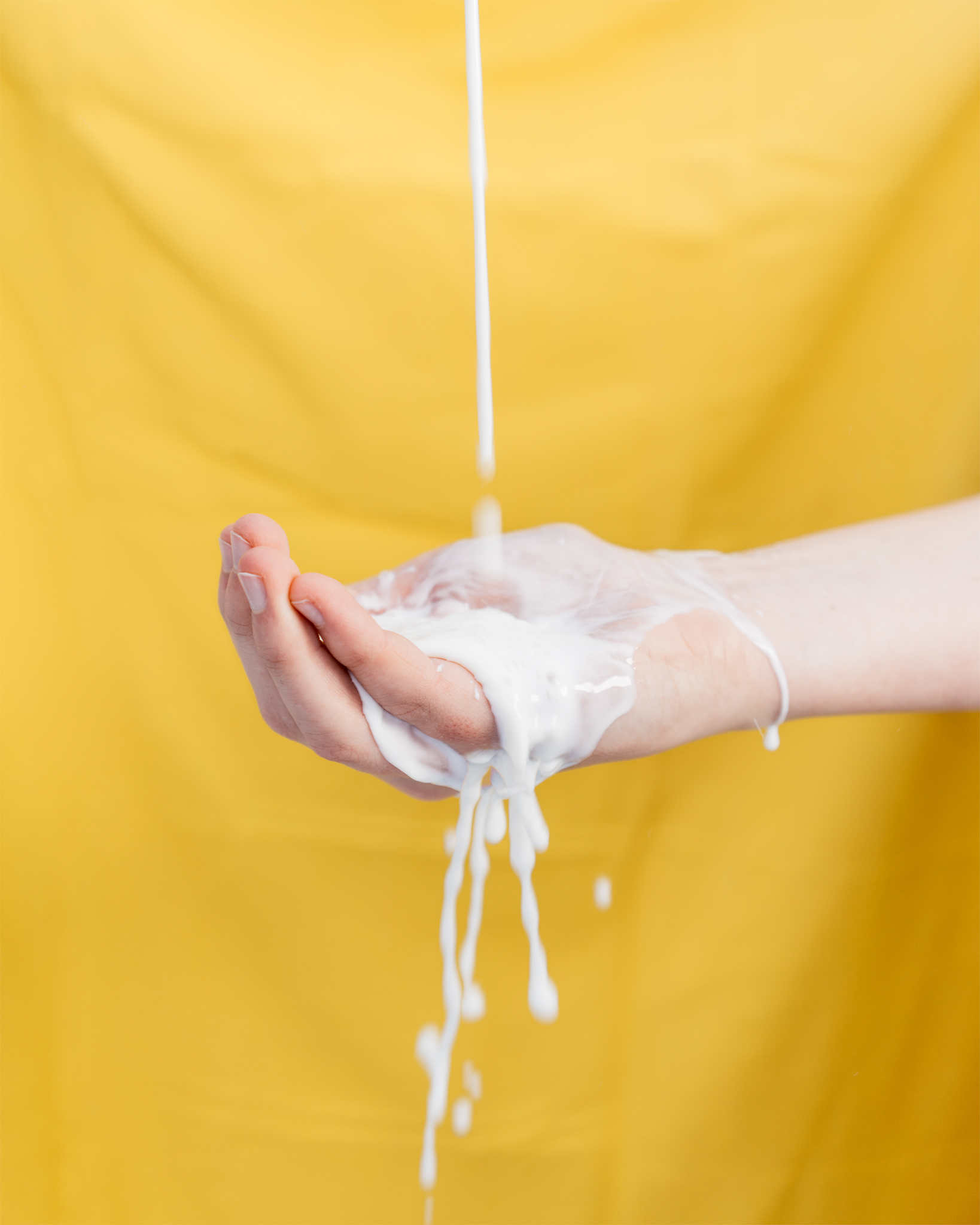 (17) Cheese made by precision fermenting, a technique where specific proteins are produced in bioreactors to emulate milk products without milk. The method could, in theory, feed the world from an area the size of London. FORMO, Berlin. Regarding the Pain of the Future # 8, © Hilde Honerud, 2024.