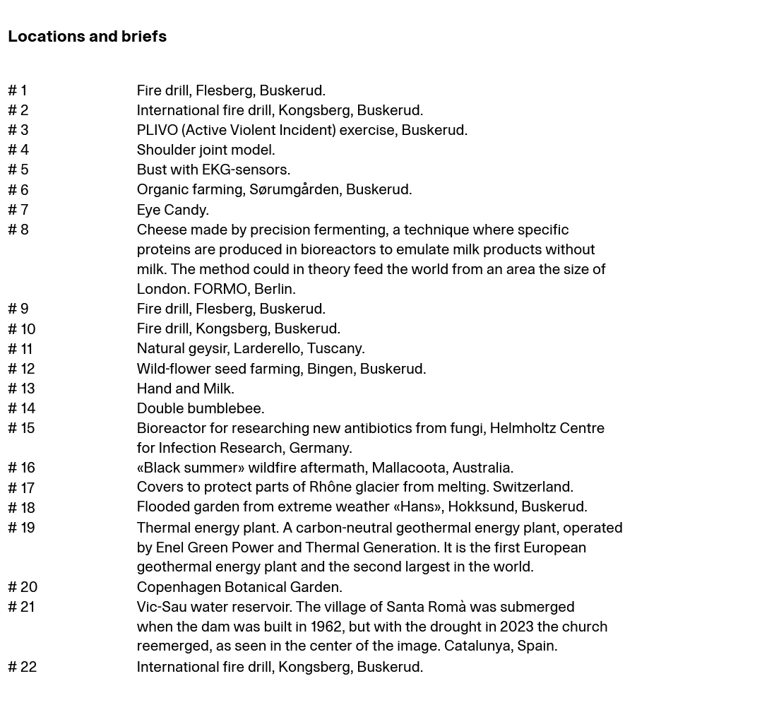 So far, working on this project has taken us to a broad range of locations and topics, like rescue agencies, farmers cultivating wildflowers, geothermal energy, drying water reservoirs, glacier covers, forest fire aftermath, anxiety and withdrawal, EKGs, precision fermentation of ‘artificial’ food, organic farming, and more. We have sought out places that can say something about complexity and unrest in our time, but that also work with images of the close and familiar. There was a hope of encompassing and creating a sort of vibrant experience, partly unsettling, partly agency, partly distress, partly a feeling of work to be done that might, as a whole, convey something about us and the times in which we live.