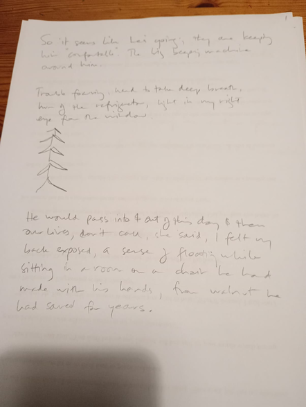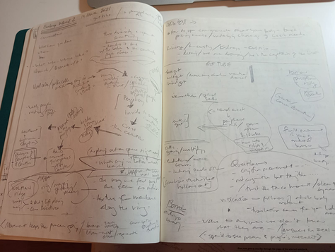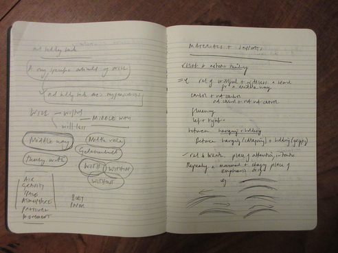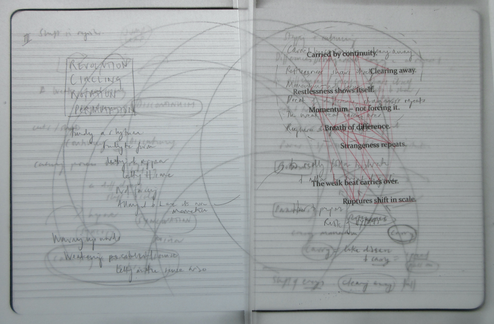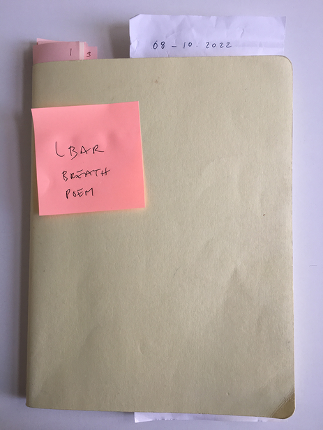 Notate a sprawling sentence that emerges from this breathing.