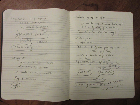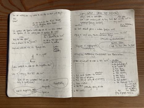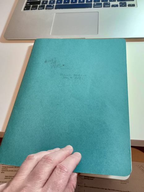 Close the notebook and open it once again to one two-page spread.