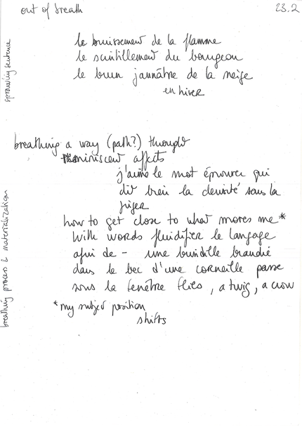 – the breathing process of materializing the sentence,