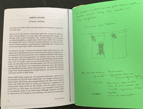 Breathe diagonally across the two-page spread. Inhale, exhale.