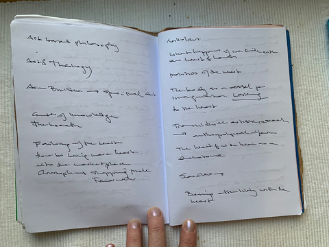 Close the notebook and open it once again to one two-page spread.