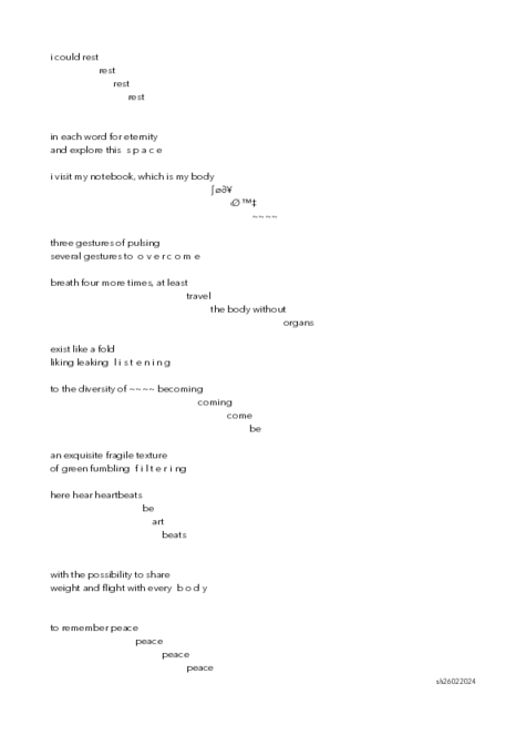 Each process condensated as a breath poem, read by each of us when we reconnected online for the next meeting on 26 February 2024.