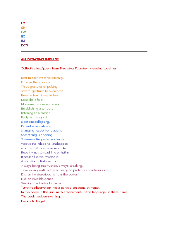 Collective text/poem from Breathing Together > reading together