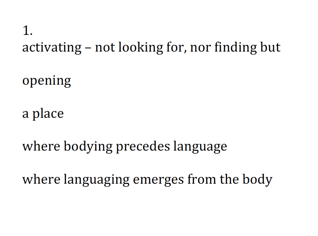 - Let the word and the experience support the distillation of the sentences/notations from the whole process into something that can be shared.