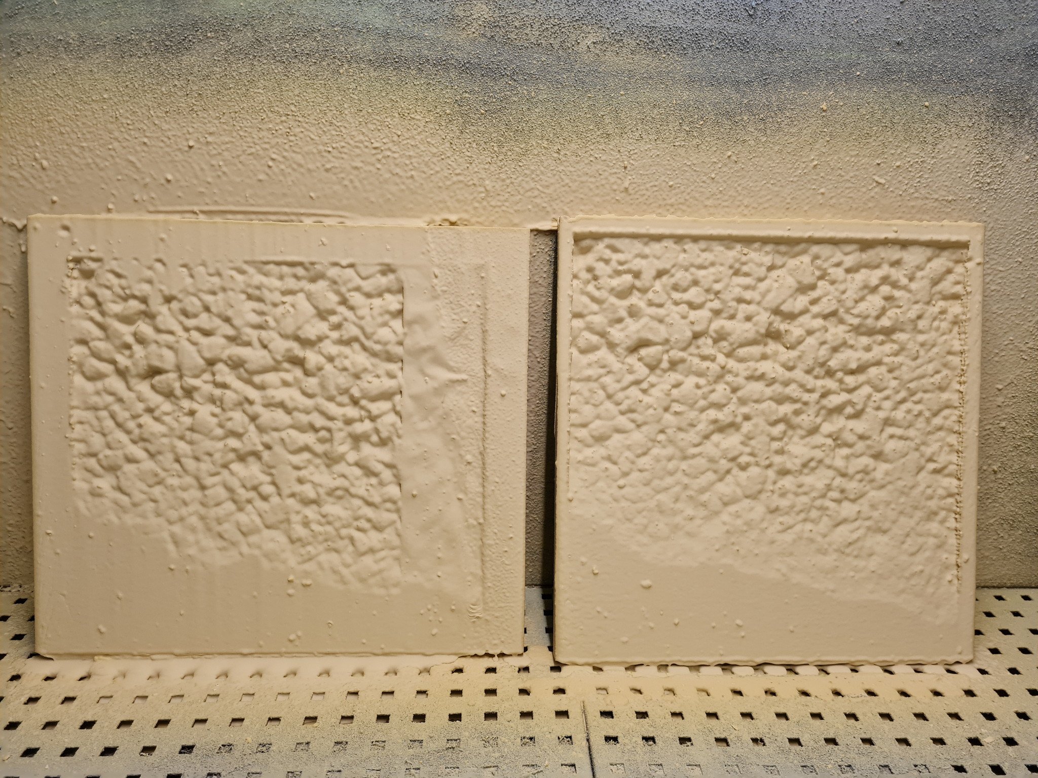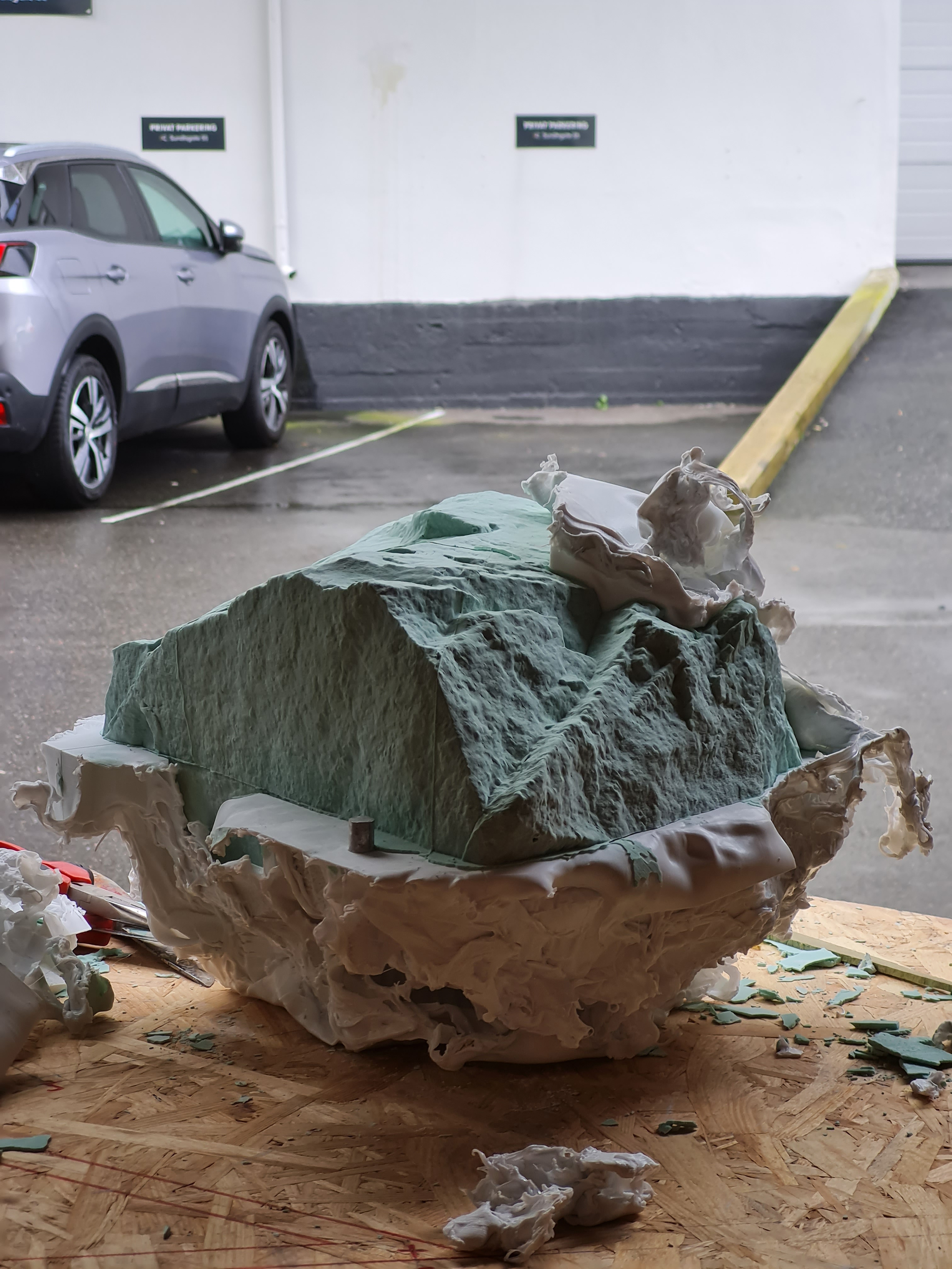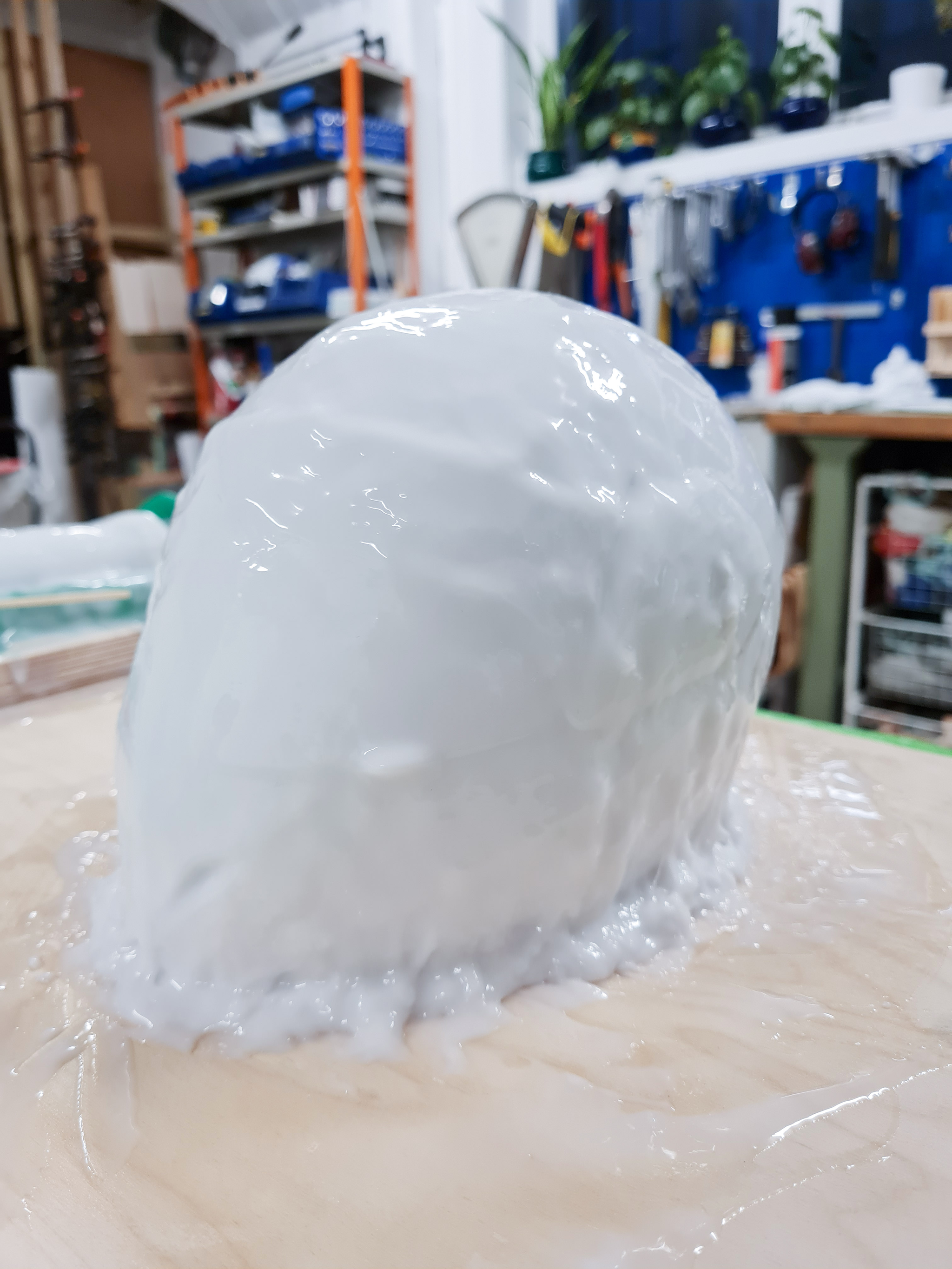 After filling the mold with jesmonite the mold was melted away with a heat gun