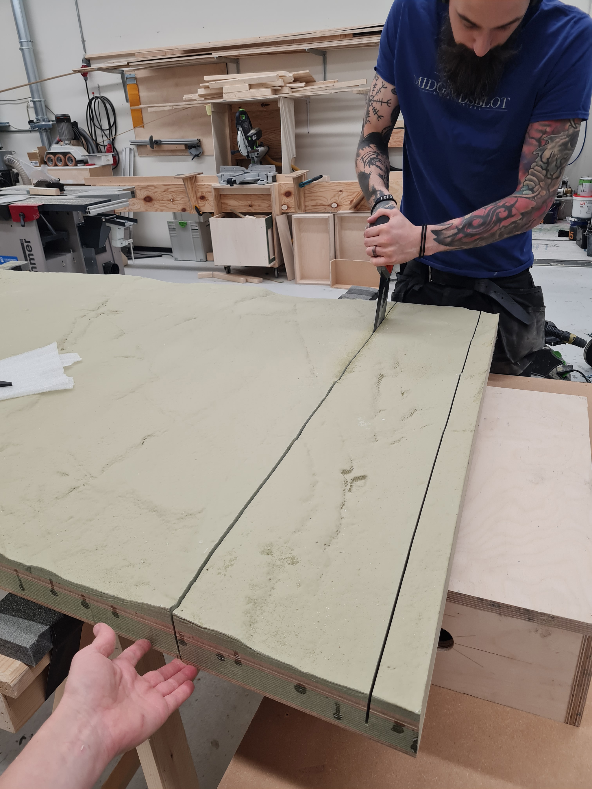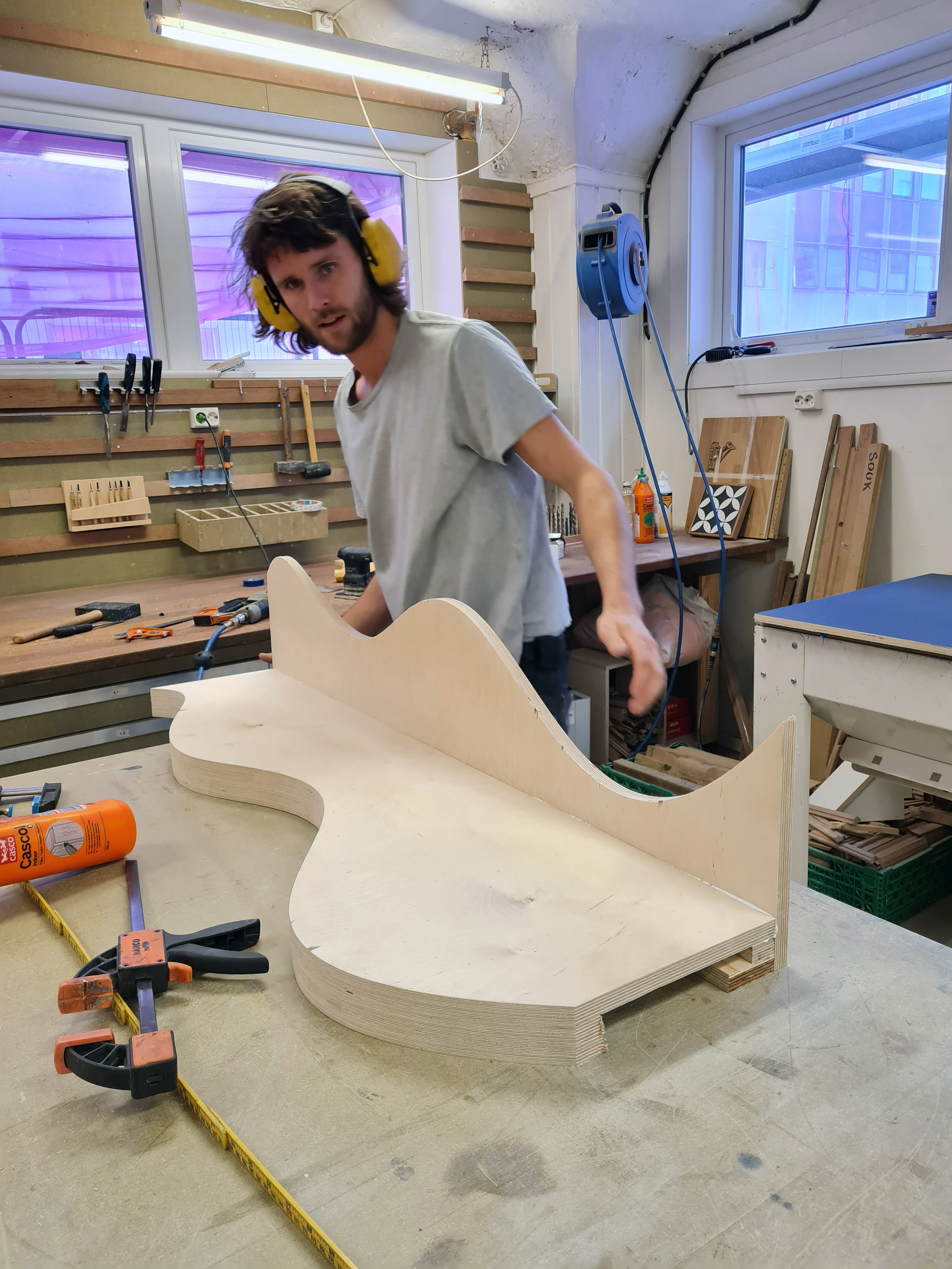 Aldea wood workshop manager Kjetil Smedal making first prototypes for shelves
