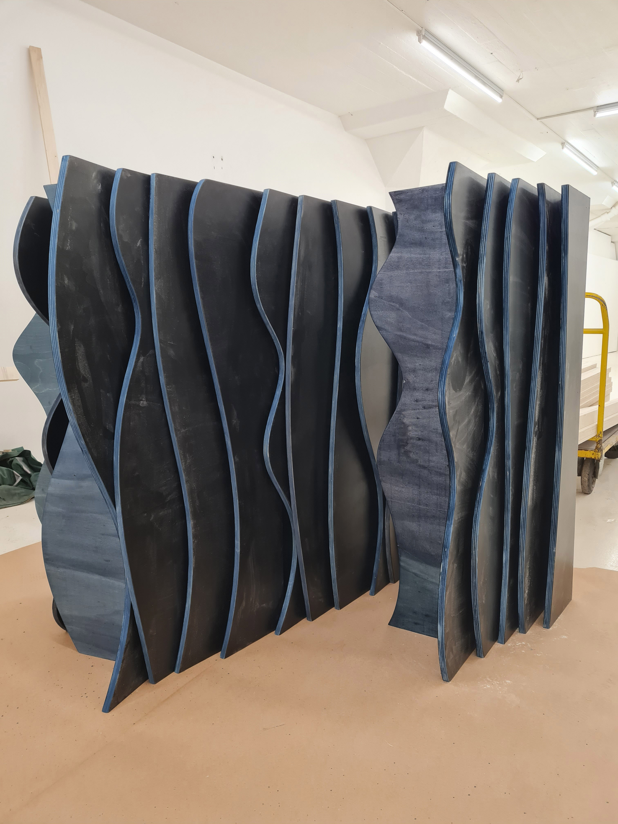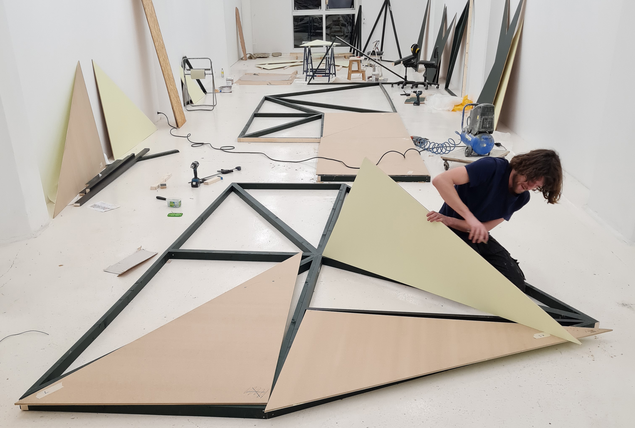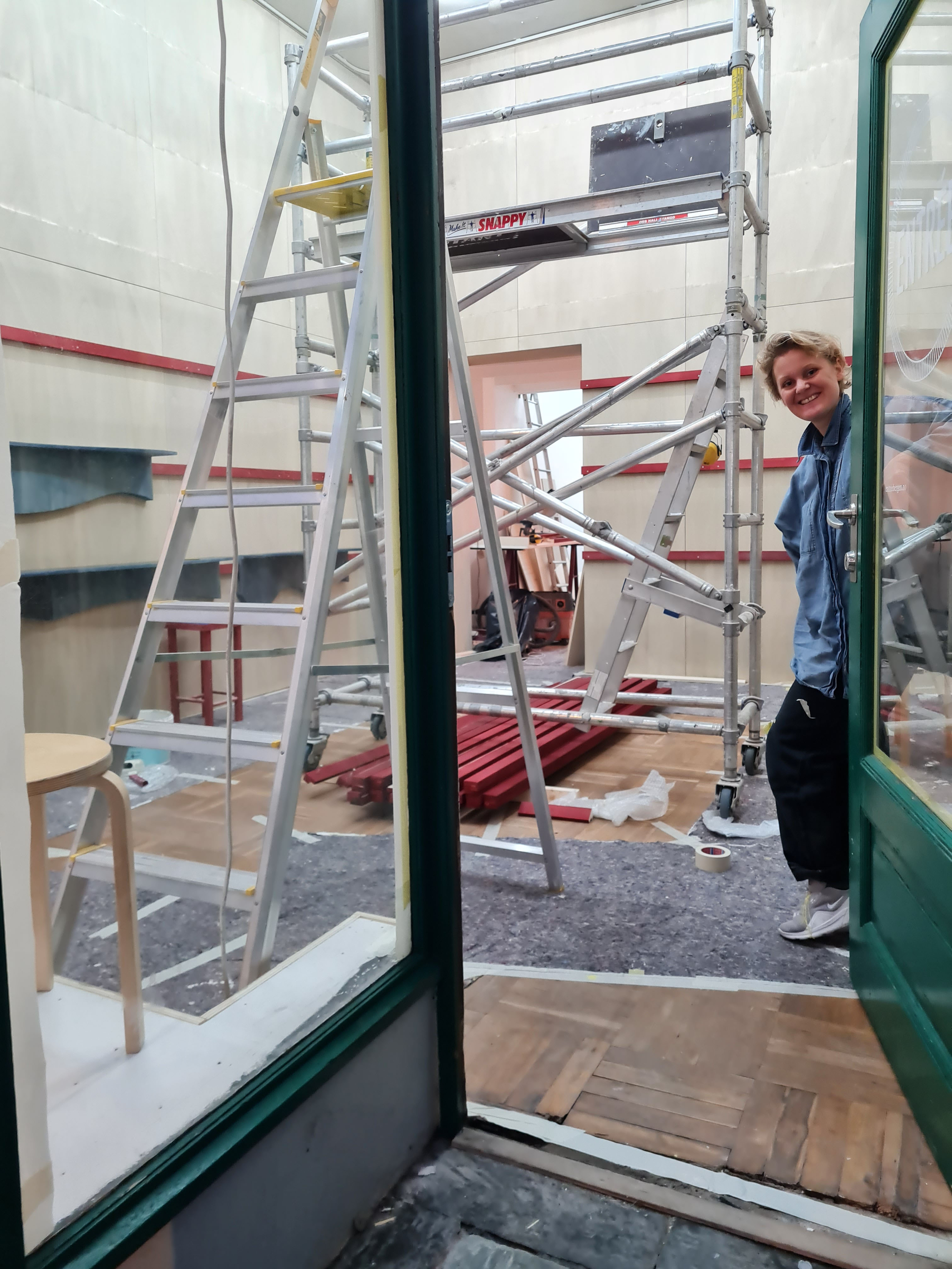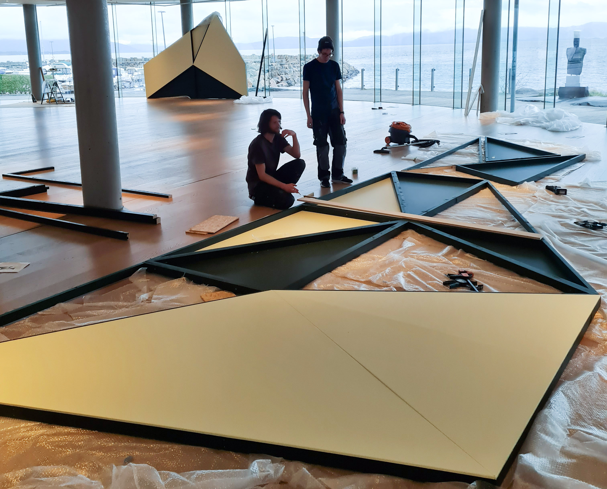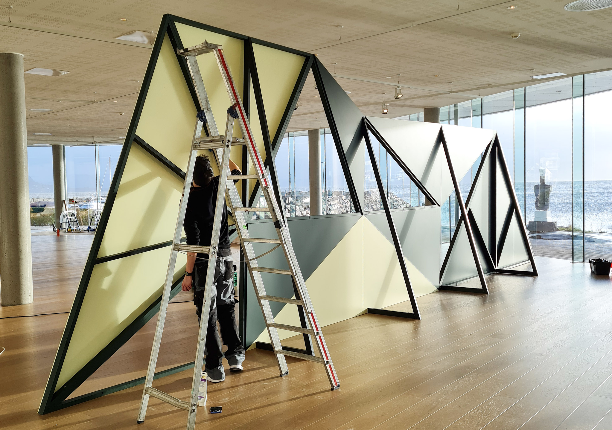Installing exhibition architecture at Oseana