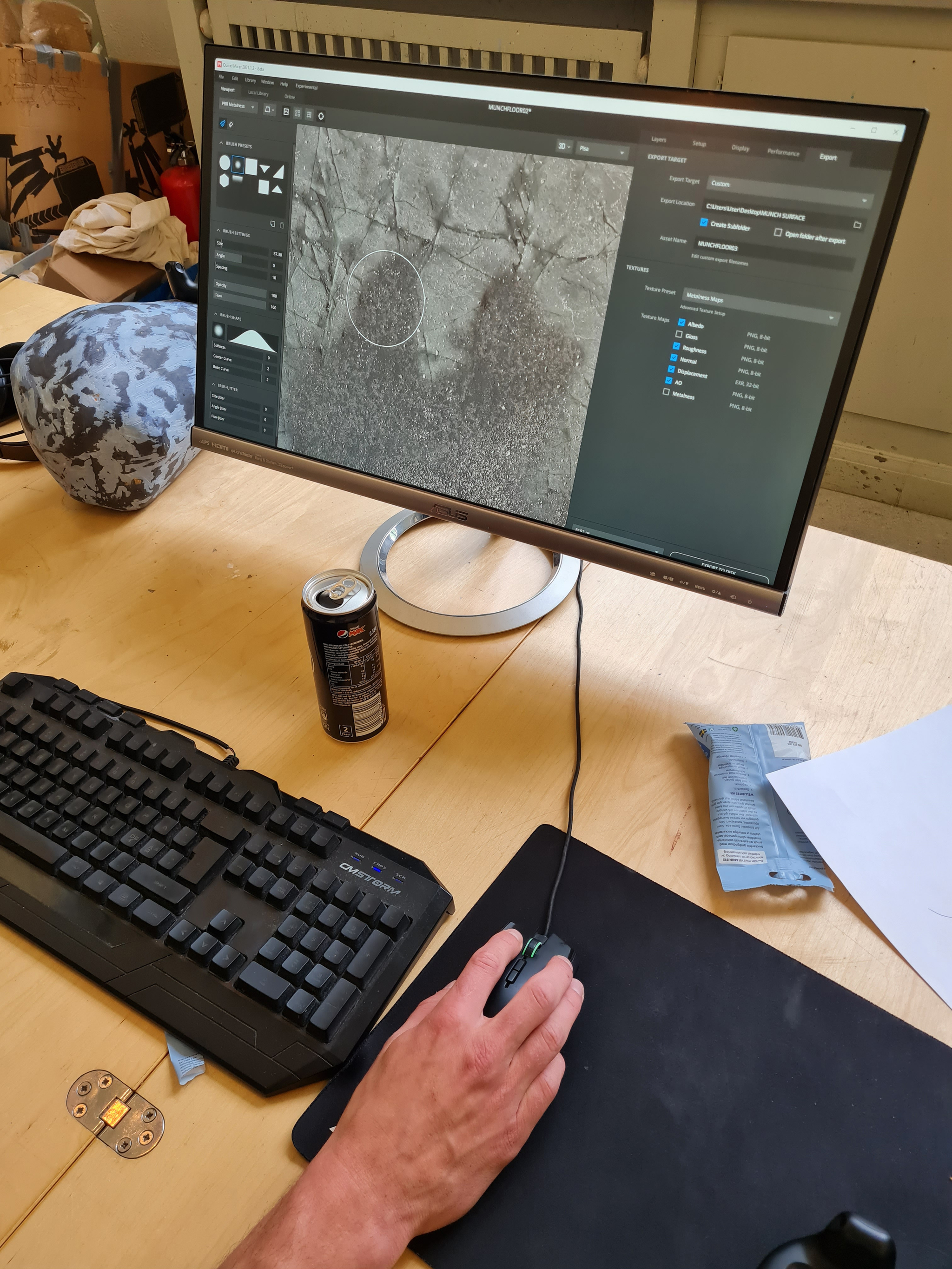 Designing the floor in Quixel Mixer by mixing together different existing textures