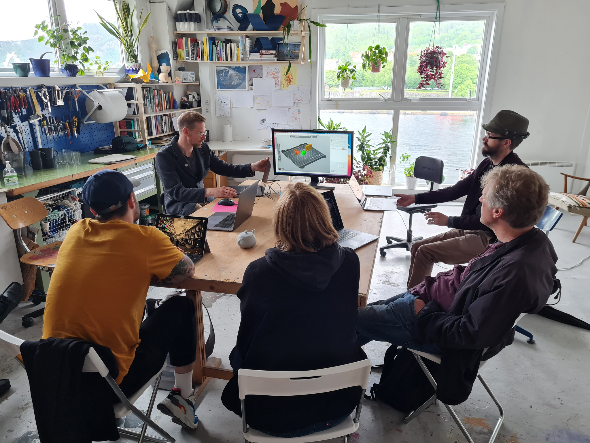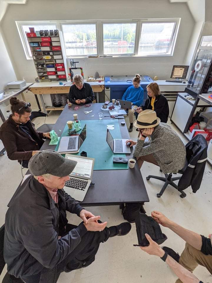 Workshop participants working with 3D prints at Aldea