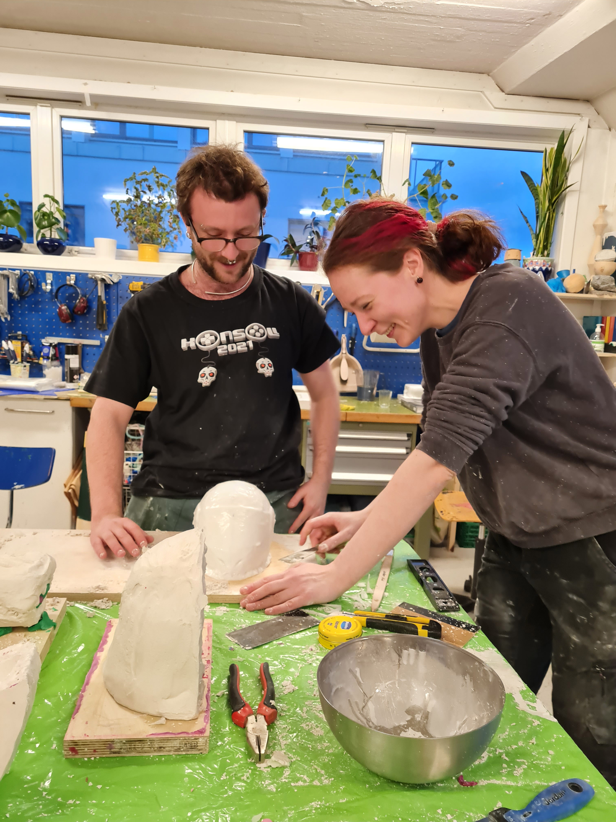 Rory Malone and Aldea digital lab manager Patrícia Šichmanová making silicone and plaster molds from the 3D prints