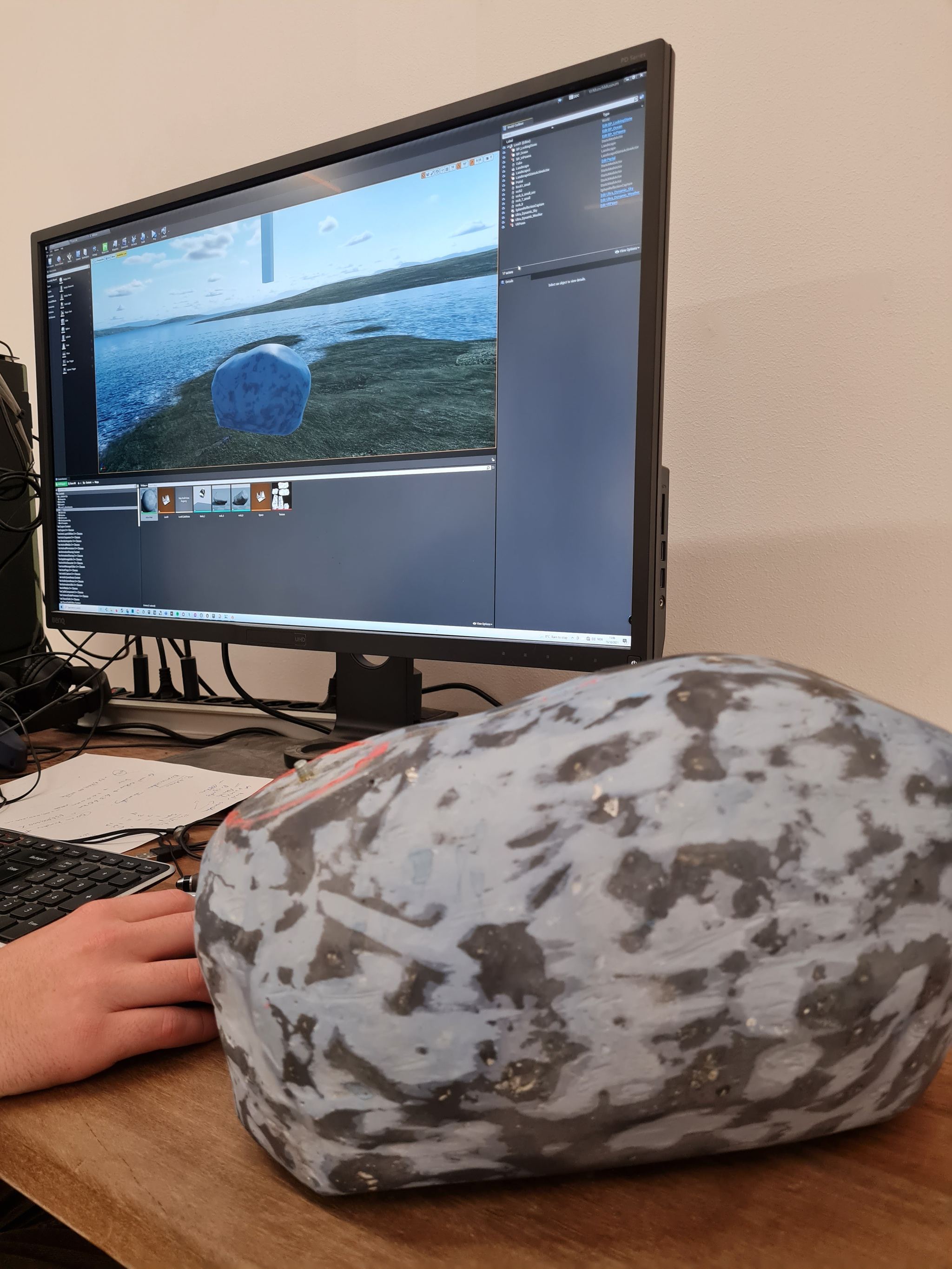 3D models of rocks downloaded from Quixel Megascans library, converted into a negative shape and 3D printed to create molds for rock shaped sculptures