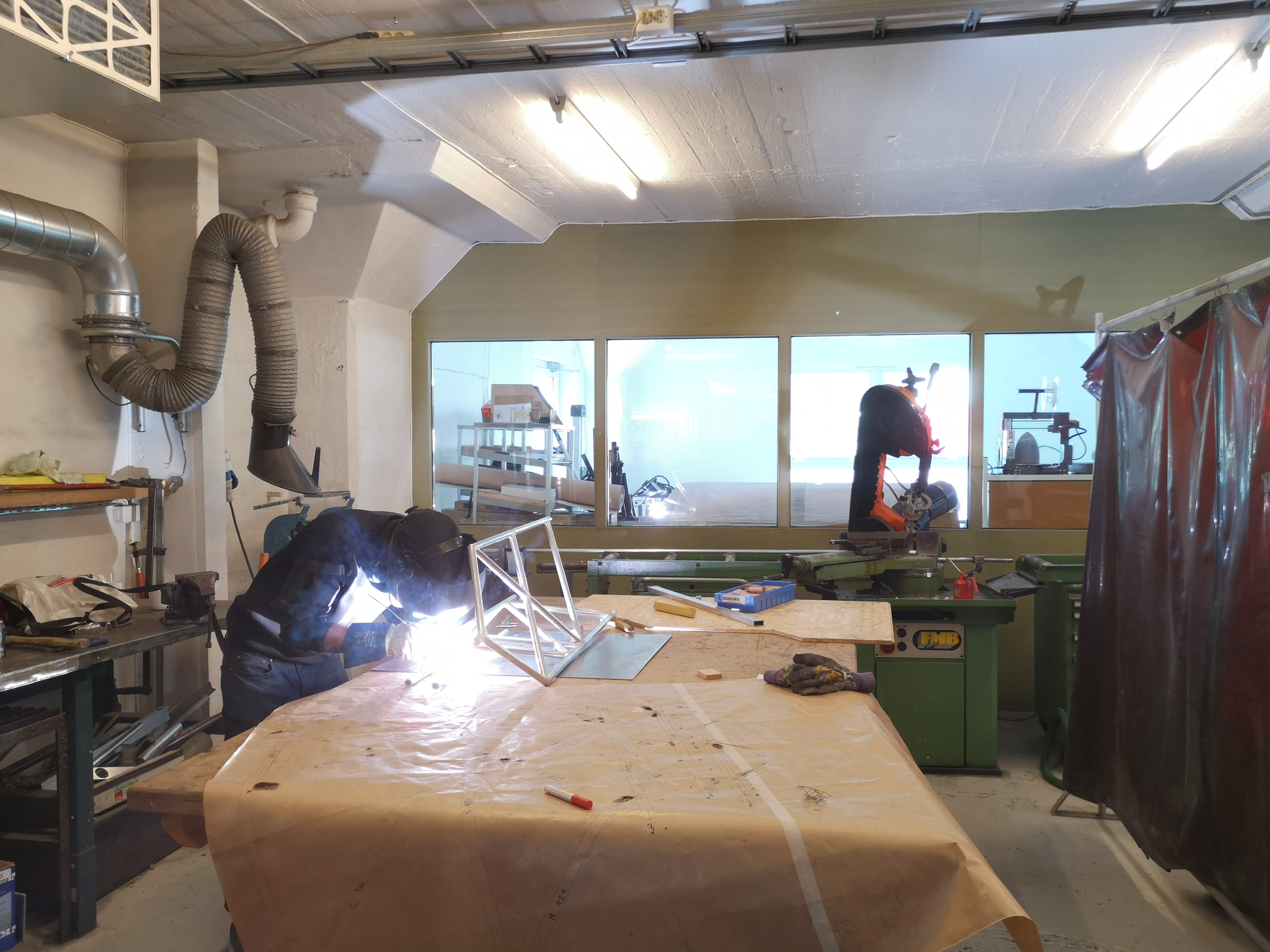 Welder at work in Aldea metal workshop