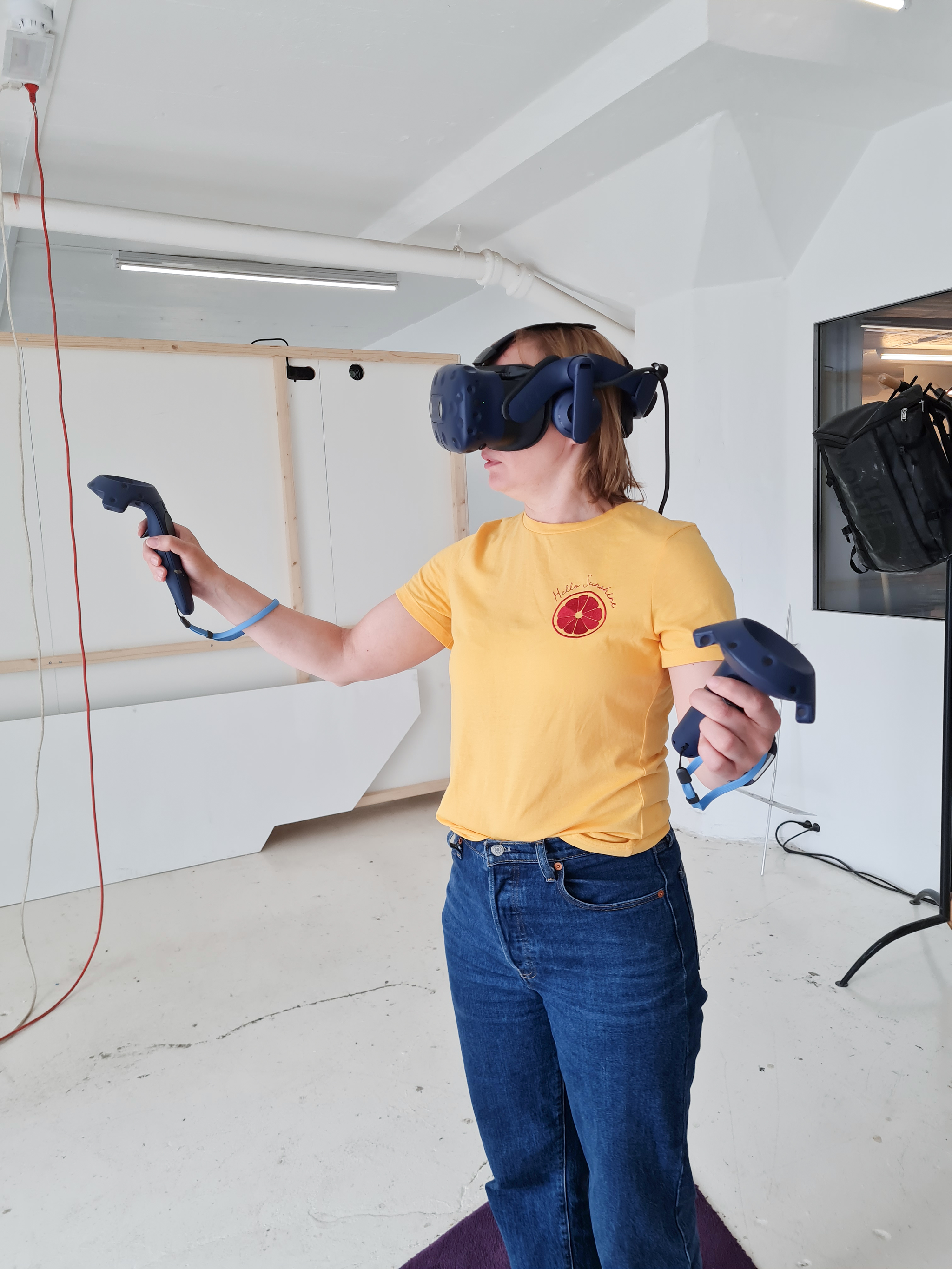 Workshop participant Åse Løvgren making 3D models in VR