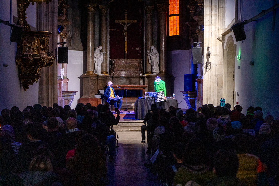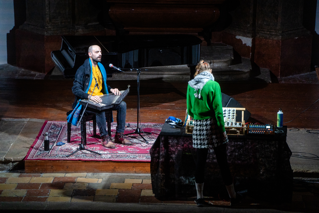 The Klarisky Church's centuries-old architecture and deep acoustics transformed it into a live agent of this performance, as the playing of synth, voice, and qanun resonated within its ancient walls. This evocative setting allowed the music to resonate not only as an artistic experience but also as an urgent reflection on the present moment, urging both us and the audience to confront the shifting realities of the world through the immediacy of sound.