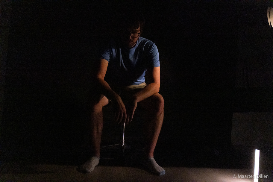 Initially, I tried to draw the figure without a reference, but I found that it didn't work well. I struggled to capture the right shades to achieve my intended effect. So, I took a reference photo of myself in a dark room.