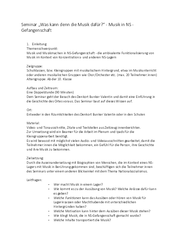 Seminarkonzept „Was kann denn die Musik dafür?“ - Musik in NS - Gefangenschaft (concept)