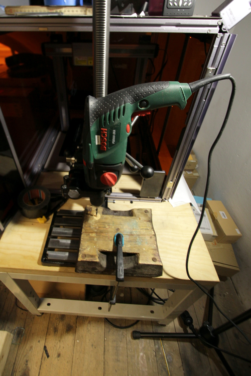 3x TPA3110 based stereo-amplifier circuit boards, with 7.62mm screw terminals for output and power, a mini-jack socket (Rean NYS 240 BG) soldered with a ~6cm cable to the line input; using 2mm MDF shims as "feet", and M2.5 screws with hex head. Their power input is chained, using the red and green AWG 22 wires of a three-pin 'LED wire'.