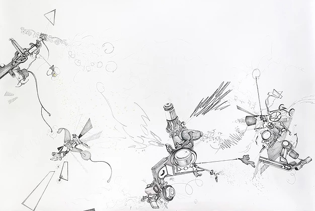 Furthermore, the early naturalists required scientific knowledge but also artistic skills, as they were required to make detailed drawings as well as to take samples of the flora and fauna they encountered. As men of science there was no distinction in their task between the charting of species and of the land. Even today, botanical and entomological illustrators are required as selective drawings frequently illustrate biology more clearly than photography. The creative value of curiosity is most clearly demonstrated in this way. Yu-Chen Wang’s drawings have the character of botanical illustrations, albeit focused on mechanical objects rather than biological ones.