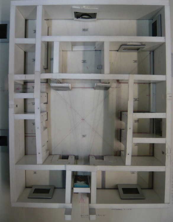 In Pompeii I found inspiration in the hardly represented intermediary form of the atrium, which is square rather than horizontal or upright. This model is represented in the Casa della Caccia Antica, the House of the Ancient Hunt, a name that also suggests a ritual of death. [5]