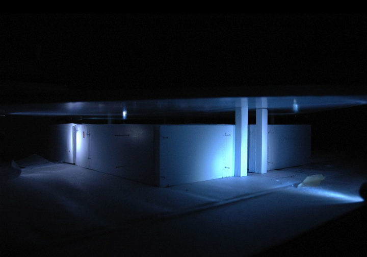 Ideally, at first the house was going to be erected in the so-called ‘depth station’, at the deepest underground level (minus 26 meters) of the metro line construction project. For various technical reasons this station proved not to be the most suitable place for my installation; instead, I opted for parking deck -2.