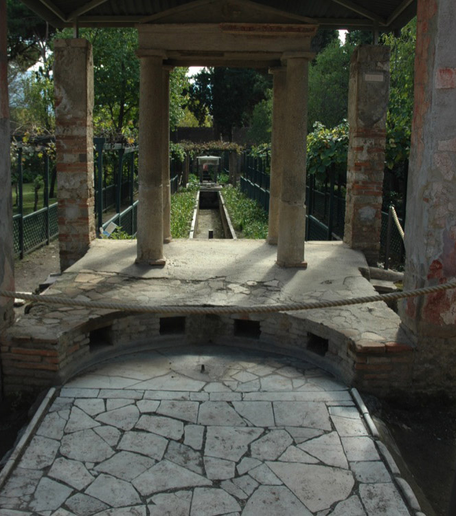 However, the salutatio did not always exist as a common ritual in Pompeii. With the expansion of the atrium house with a patio, garden and garden rooms – by adding, in other words, a second atrium to the house and making it ‘deeper’ – the representational function of the former atrium and tablinum diminished. At one point the tablinum even disappeared altogether, or was remodeled into a passageway leading to a second atrium: the so-called peristylium or arcade.