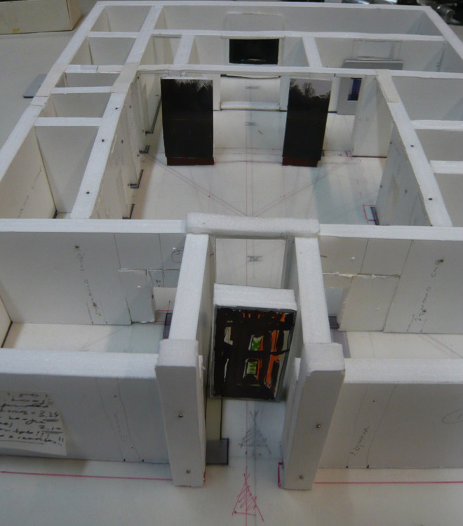 It will be made of polystyrene and has no roof; the roof of the location doubles as the roof of a parking garage. As regards the installation’s positioning, I would like to use the original coordinates of Pompeii in the location in Amsterdam, meaning that the house will be shifted a quarter turn vis-à-vis the coordinates of the place selected.