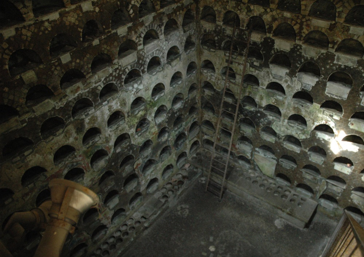 The hotel is located on the edge of modern-day Pompeii, which like a ribbon development gradually emerged along the excavation’s site, parallel to one of its major arterial roads, the Via Porta Nocera. The central district consists of a square with a pompous early-twentieth-century church: the Santuario della Beate Vergine del Rosario. At one point in the nineteenth century, as the story has it, a painting depicting the Madonna was carried in a procession to Pompeii. Once the procession reached town, the Madonna began to cry. This was enough reason for erecting a huge church, to accommodate the flow of pilgrims that would flock to the location from that time onward. The town, which used to be poor, profited greatly. It is rumored that the extra income served as compensation for the minimal benefits from the nearby ruins.