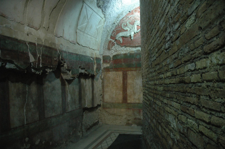 The floor plan of its characteristic house, the Italic domus, shows a strong resemblance with that of older Etruscan graves. This so-called classical atrium house is rooted in Etruscan-Italic culture and is mirrored in Etruscan burial culture; it has specific names for the various spaces such as atrium, tablinum and triclinium. In fact I also encountered these names, such as cubiculum, in Roman pagan and early-Christian burial culture, and they were synonymous with a specific use of the spaces. If these spaces in Roman burial culture reflected the certainty of eternity, their use in the design of Pompeian homes seemed much more fleeting and complex.