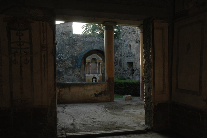 Lararium of the Casa del Principe di Napoli from the hortus, seen from the summer triclinium, Pompeii (study photo: Krien Clevis)
