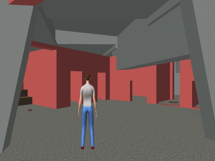 Artistic impression, view from the Atrium into the Tablinum and the Hortus behind 3D Animation – screenshot with real public (in progress)