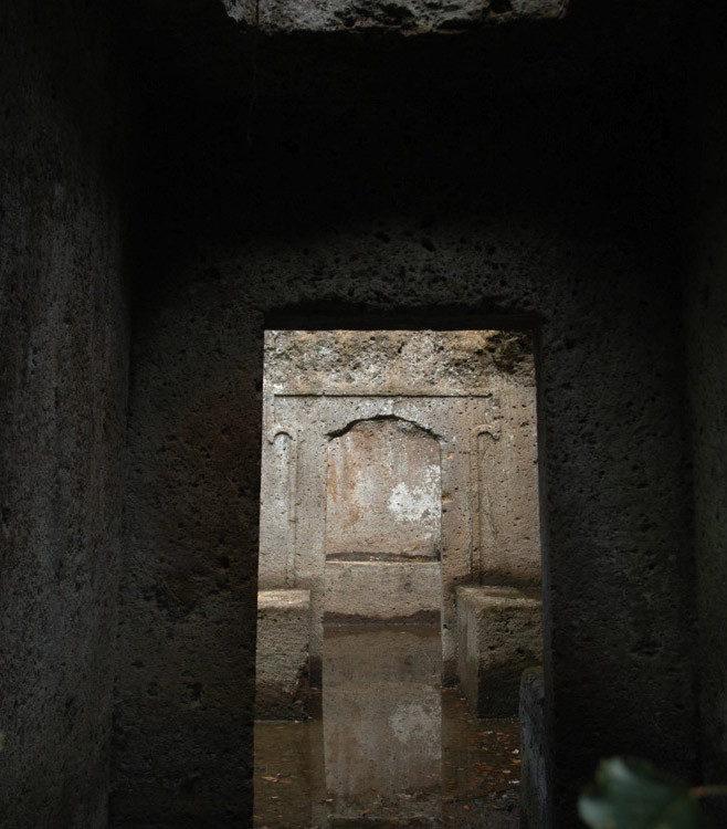 In my visual artwork place is tied to memory, rootedness, history, transience and transition – notions that in my project all converge in concerns closely associated with death. To understand these concepts and the places involved, I investigate the physical and qualitative aspects of specific places, in particular places with historical meaning. Based on historical and archeological study and by way of the ancient Roman concept of Genius Loci, the spirit of place, my reflections on the quality and characteristics of place has led me to the tombs of Rome and Cerveteri and the dwellings of Pompeii. [1] The various differences and interconnections between these two ancient sites of life and death as two extremes have been essential to my research. As such my historical field research has provided a context for mobilizing and deepening my visual, artistic work, as well as pushing it in particular directions. The central question of my research deals with depicting and creating a place and how this place gets its meaning in the course of history through new layers of construction, as well as aspects of time and space. How does the meaning of place change through the ongoing process of historical overwriting? How do I as an artist deal with the historical subjects I study? What are the implications of my approach for my photo works, their mutual relation in the installation I develop, and, last but not least, the experience of the public of my artwork?