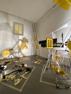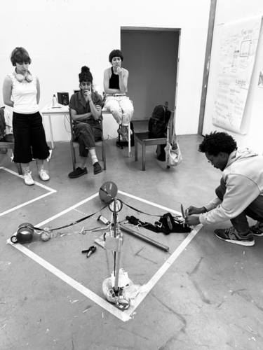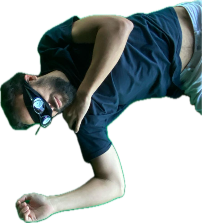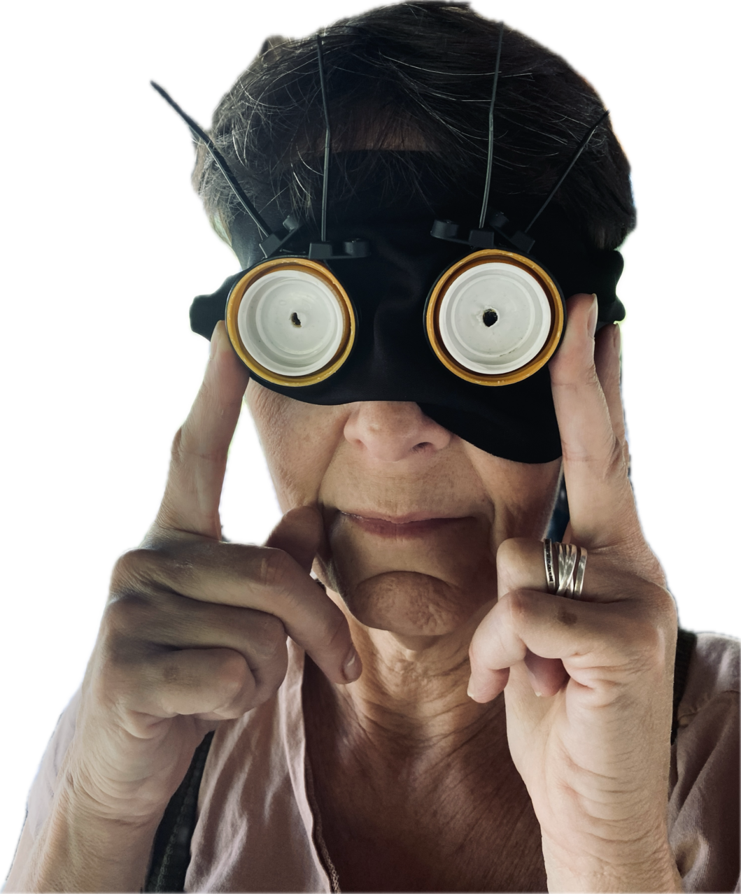 dipositivo desenvolvido para práticas de alterção da capacidade de percepção dos espaços e do corpo. Limitar a visão e amplificar a audiação. Ouvir o mundo com outros olhos, em vias de (re)COMPOSIÇÃO