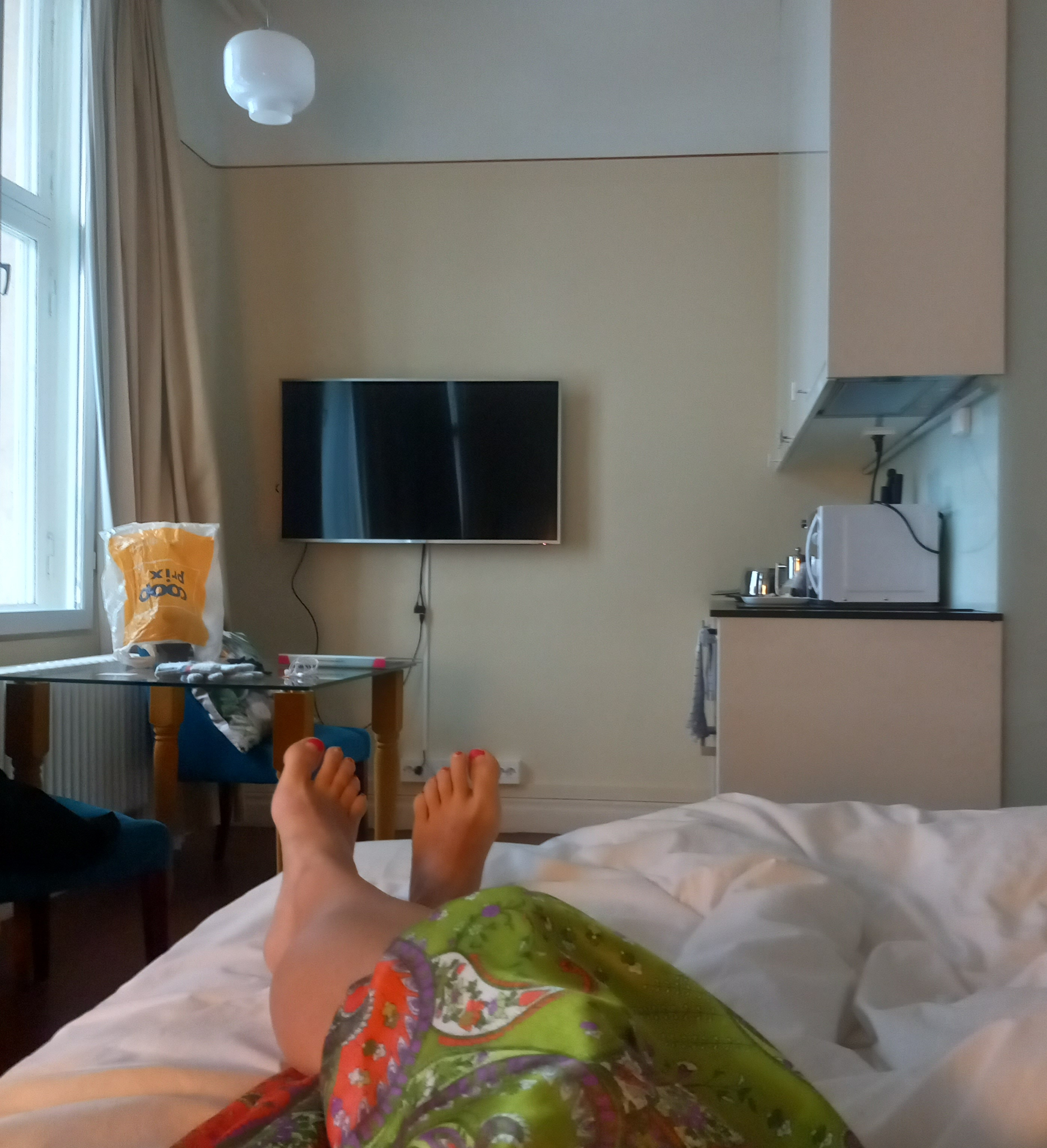 Above and on the right photographs: Storytelling through art photography in hotel rooms. From the "Forensics" digital photography series, Oslo, Norway, 2024. On the right: Original text message from the Swedish police, 2025, about my blue Nike rucksack that was taken from inside a cafe at Stockholm central station. Before I collected it from the police station at Stockholm central station, the police had opened my rucksack to examine the containers, which, besides an old Apple laptop and a tablet, was mainly personal documents, including banking documents, with my legal name on them.