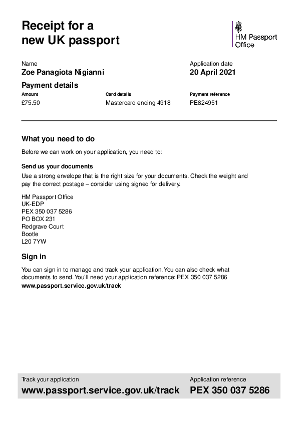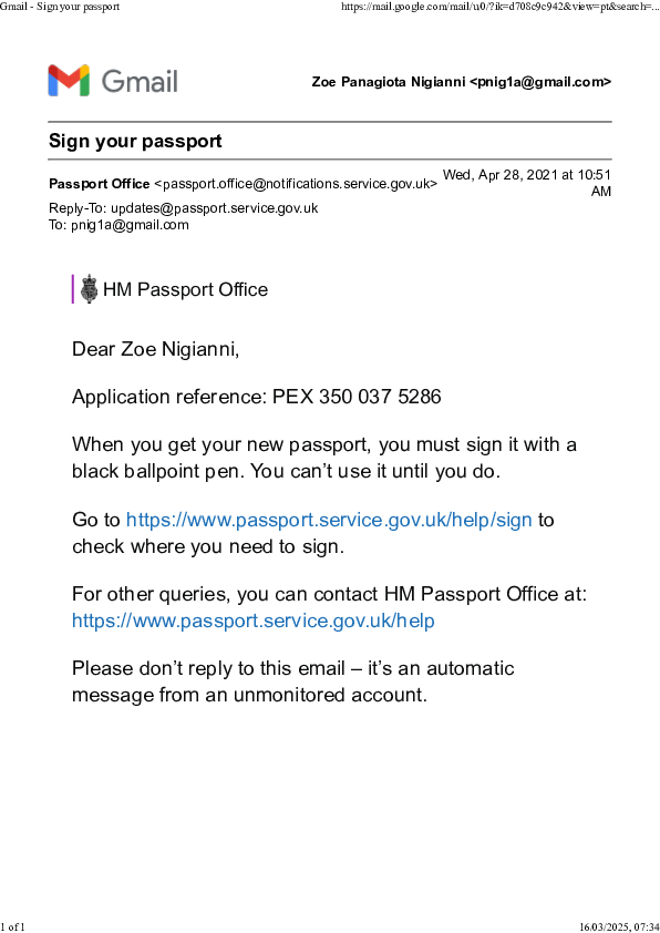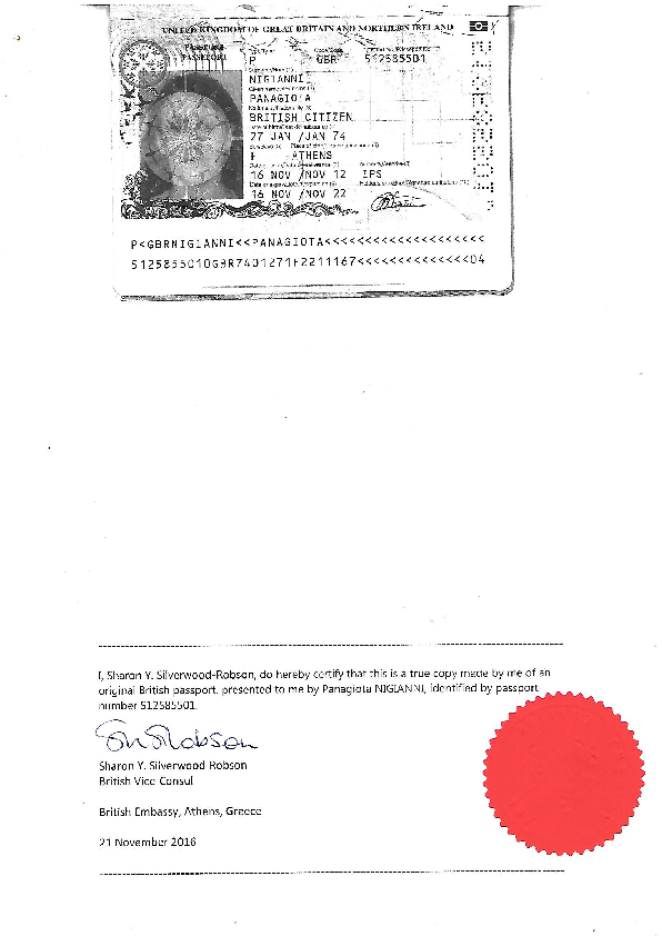 I hadn't issued a Greek passport with my legal name at birth, Panagiota Nigianni, since 2016. My old British passport, issued in 2012, was in that name of mine. I issued a new one in November 2024, in my legal name at birth, Panagiota Nigianni; that's how Greek passports are issued, in someone's name at birth, showing their sex at birth.