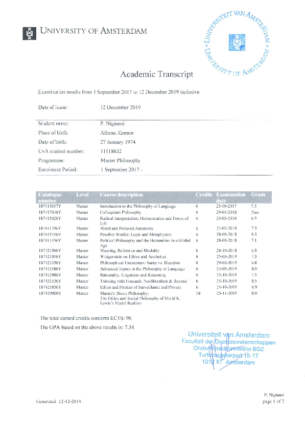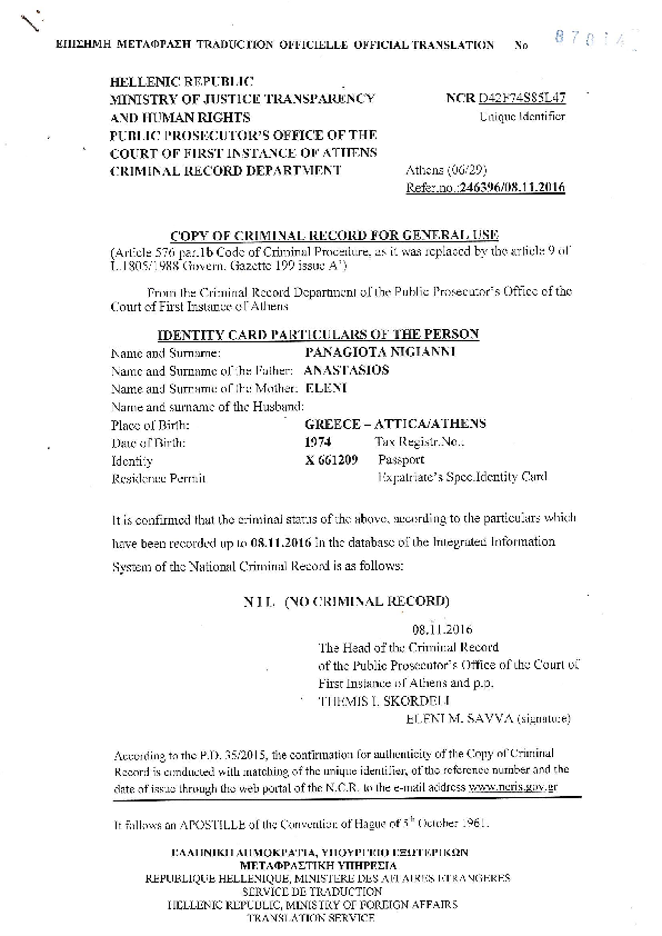 Not only my artistic name and name known as was used on the four fake EU/Italian driver's licenses, but also the number stolen from my 1994, valid EU/Greek driver's license: Panagiota Nigianni, issued in 1994, and registered under my tax number in Greece. No two driver's licenses have the same number.