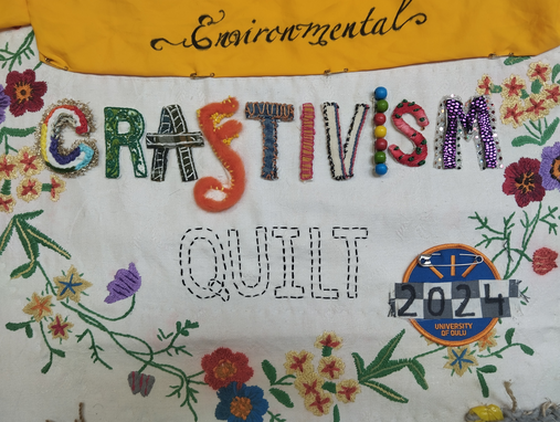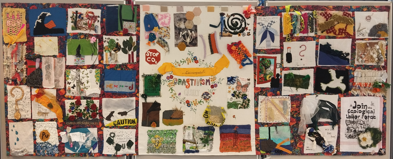 Britta Fluevog, Verena Winiwarter, Anna Svensson & Scott Braun set up a series of craftivist projects, workshops and a makerspace at the world congress of environmental history conference in Oulu, Finland 2024 and this is the documentation of the quilt made through the maker space and a quilting bee workshop.