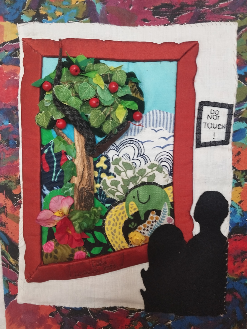 This expresses concern about the limitations of conservation efforts that remove or create distance to humans, reinforcing a nature/culture divide. Also, handmade works are valued more highly if they are objects of display rather than use - they are not to be touched. (Somehow this quilt doesn't work according to that logic, even if it is made for display. It is a gift, and the labour and materials were not paid for.)