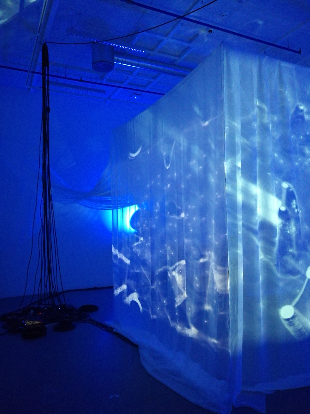 In short, this contextual, media-expanded focus has moved towards exploring how we engage with our environment. Initially, the focus for the project was to specifically reflect a correlation between the complexities of expanded dimensionalities and digital technology, through the way that the performative installations folded digital and human/biological agencies and movements. However, as the project progressed within this expanded/interconnected premise, this aspect has become part of a broader exploration of the consequences for our physical, biological, digital, and social entanglements. All ways in which context and content, internal and external, mind and body, subject and object, and imaginary and actual have been allowed to move more freely as co-constituent parts of a larger web.
