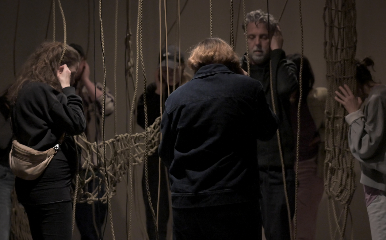 Family Susanne Christensen, Christian Christensen, Ivan Ditlev Eriksen, Erik Medeiros; PhD supervisors Brandon LaBelle, Frans Jacobi and Sher Doruff; midway and slutt committee members Anne-Helen Mydland, Eamon O'Kane, Aaron Knochel, Katrine Hjelde; PhD assessment committee Eamon O'Kane, Rita Marhaug, Dan Byrne Smith; Workshop participants at “The Panel Discussion of Another Dimension” Stine Kvam, Lars Kynde, Peter Voss Knude, Malina Terkelsen, Emma Sjövall, Beate Poikane, Erla Auddunsdottir, Linn Mina Paasche, Marlene Rysstad, Ingeborg Jørgensen Tysse, Yasemin Orhan, Yimin Dong, Sepideh Garakani; Public performers at “The Panel Discussion of Another Dimension” Emma Sjövall, Beate Poikane, Marlene Rysstad, Nicola Gunn, Marit Loe Bjørnstad; Public performers at “Pulling the Earth Strings” Rita Maria Farias Munoz, Line Poulsen; Secret performers at “Where are We Now? “Where are We Now? “Where are We Now?; Documentation Siavash Kheirkhah, Sasha Azanova; RC Design Andreas Hjort Bundgaard; Technical and material development Luca Biada, Sindre Sørensen, Erik Medeiros, Jean-Paul Pirie, Lise Ulvedahl Carlsen, Susanne Christensen, Sofie Hviid Vinther; Professional exchange, advise and support Julie Lillelien Porter, Francis Brady, Randi Grov Berger, Alvin Lindø, Scott Rettberg, Anna Watson, Anette Andersen, Antoine Arthur Hureau-Parreira, Andreas Dyrdal, Eivind Bjørsvik,Tejananda; Colleagues and friends Karen Werner, Kjersti Sundland, Magnhild Øen Nordahl, Nicola Gunn, Sofie Hviid Vinther, Marieke Verbiesen, Kaeto Sweeney, Sara Gebran, Dan Brown, Marie Sikveland, Gitte Sætre, Pauliina Pöllänen, Juliane Zelwies, Sabine Popp, Feronia Wennborg, Siavash Kheirkhah, Clea Fillipa, Åse Løvgren, Anne Marthe Dyvi, Sarah Hilmer Rex, Tobias Kvendseth, Lilibeth Cuenca Rasmussen, Jacob Remin, Rebekka Elisabeth Anker-Møller, Advayasiddhi, Kenneth Varpe, Anders Lysne, atelierfelleskapet KKT; Institutions Celcius Projects Malmö, Bergen Center For Electronic Arts, Gallery Entrée, Lydgalleriet, The Art Academy – Department of Contemporary Art, KMD, University of Bergen, Lungegårdsvannet, Nordnes, Norsk Fletteri, Hellers; Technologies and materials Rope, Polyester voile textile, String curtain, Genelec speakers, Kinect Sensor, PUI Audio transducer, DC motor, Photoshop, InDesign, Research Catalogue, Premiere, ChatGPT, Arduino, VVVV, Max/MSP, Electricity.