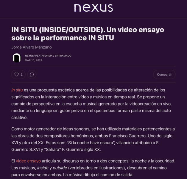 The essence of the video essay is to transfer the energy of the chosen audiovisual pieces to a new language. It aims to focus the viewer on a detail, a concept that articulates part of the narrative. In this series, different proposals converge to emphasize some relevant aspects of each selection. The articles allow me to investigate and reflect on the topics I photograph or film, deepening and discussing my research with other authors