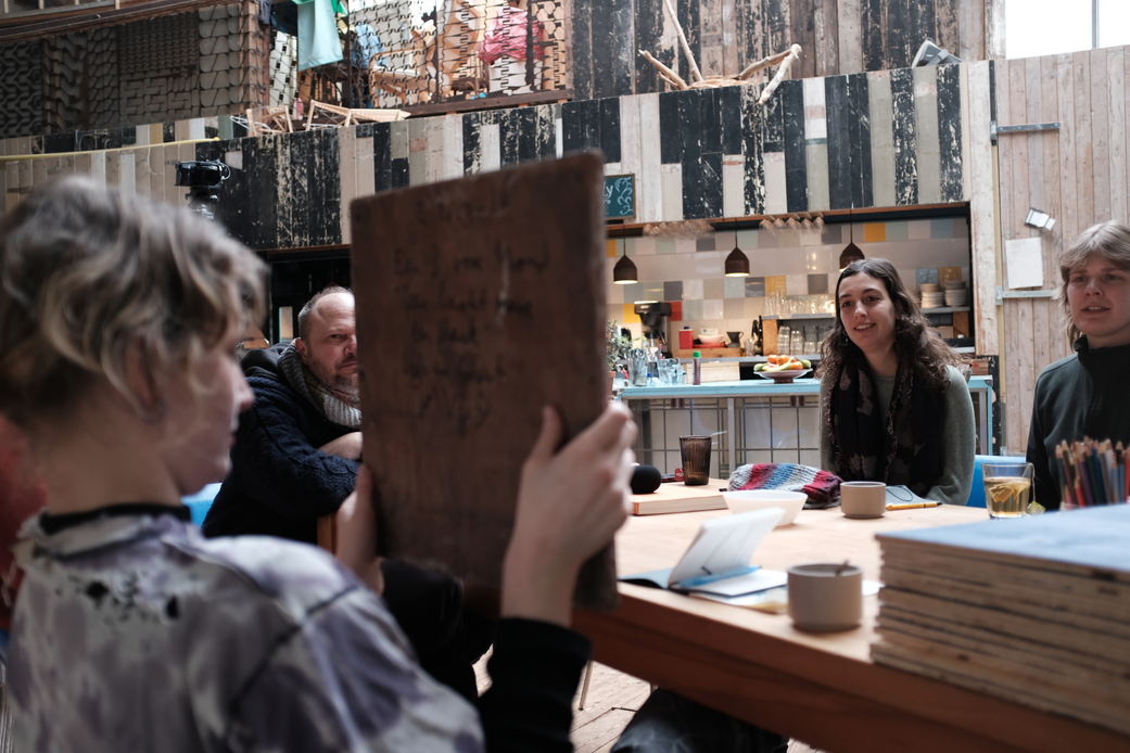 For the two last laboratory sessions in March 2025, Lio Spinnewijn (visual arts) and Lea Hegemann (dramaturgy) from Collective Brownout led a collective dramaturgy session in preparation for a public sharing moment in April 2025. Guest artist Feli Navarro facilitated a Deep Listening workshop as introduced by Pauline Oliveros offering insights into this well-established methodology.