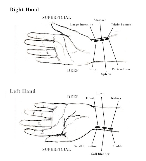 Though Pulse Project situates itself in the public domain, it is the intimacies and methodologies of the “clinical encounter” as a means for developing knowledge of others that provides the original context for this study. During my clinical training, I was taught to regard the “other” (patient) from the perspectives of two different rubrics simultaneously. One mode of experience was directed by the western model where the patient is assessed from a certain distance, within the lexicon of pathology. Whereas within the traditional Chinese medical model, the clinical relationship between the practitioner and the other (whom I consider the “querent”) is less clear-cut and more intersubjective. The practitioner has a more intimate physical/emotional relationship with the other/querent and actively feels for subtle qualities within their pulse, palpates the “skin viscera,” i.e., touches local sites along the body, along the “channels” as well as employing other clinical methods for gathering information (e.g., clinical questions regarding the querent’s condition, emotional state, listening for certain sounds within the voice and body, associated smells, visual observations, etc). When compared with the occidental medical model, tactility features as the primary mode of relating and diagnosing in the clinic of the Chinese physician (Hsu 2005).
