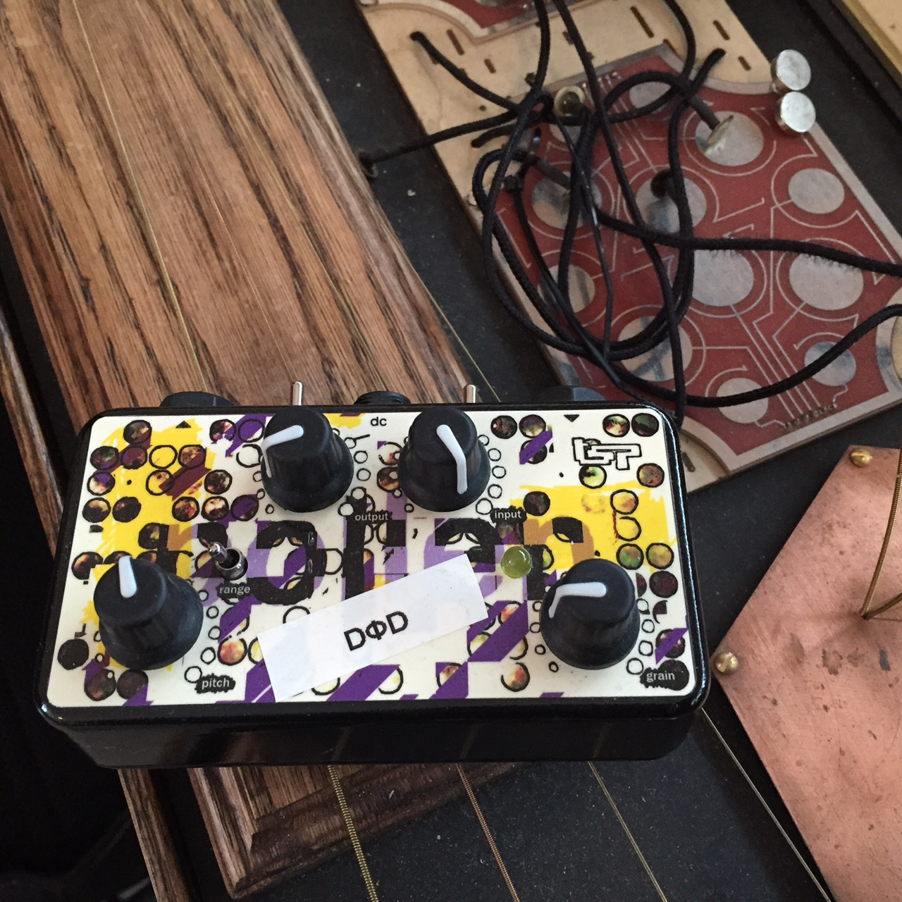 Examples of imaginary interplay partners in the instrument are: The hadron particle synthesizer, the 4 track looper (Max), the midi looper (Max), the Squarewave Parade Teaspoon window sampler in combination with the Hexe Revolver pedal, the feedback generated by the pedal section, the feedback generated by the digital system in combination with the exciter loudspeakers, the contact microphones in combination with the Max4Live Stutter patch.