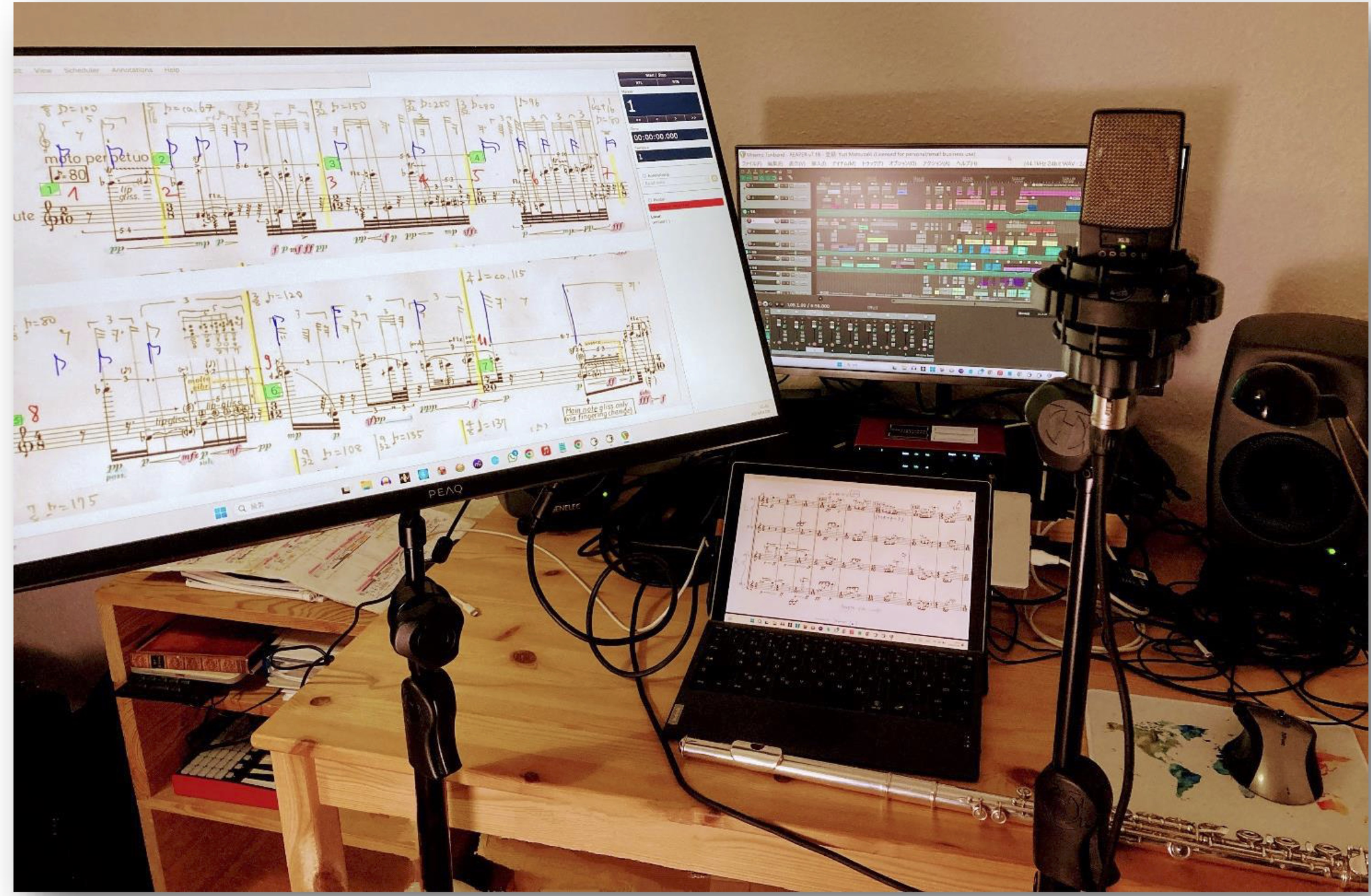 This project aims to raise the profile of this unique piece by increasing accessibility and visibility. To make the work more accessible, I plan to update the tape recording and engrave the score. Re- producing the tape recording would update the pitch to 443 Hz. I will synchronize the recording with the "PolytempoNetwork" software, which eliminates the need for a click track, cables and headphones. This not only allows for more freedom of movement of the performers, but also vastly improves the listening experience for the audience. Once these improvements are complete, the score and accompanying tape will be donated to Edition Peters so that it may be more available to other flutists for performance.